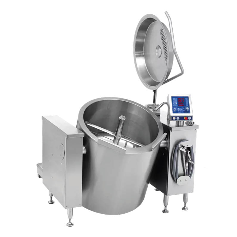 Optional Accessories: Whipping tool, cleaning tool, light in kettle bowl, GN-support, pedal, cooling, rising program, spray gun, sieve plate, pouring plate, measuring rod, rotatable lid, tube cleaner, heating by direct steam, signal for exhaust hood.